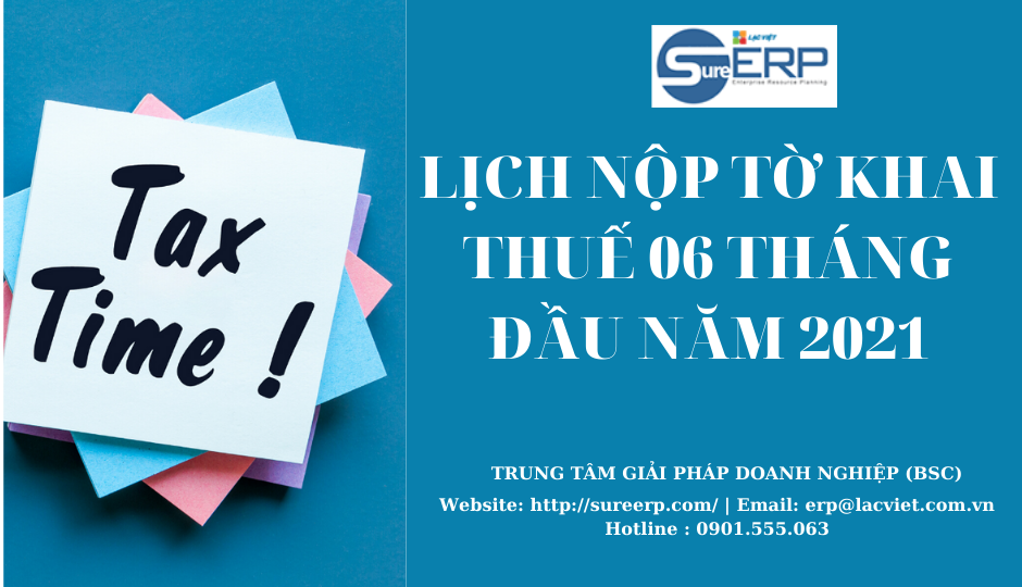 Nhằm giúp nắm bắt được thời hạn thực hiện các công việc về thuế trong doanh nghiệp. SureERP gửi thông tin Lịch nộp tờ khai thuế 06 tháng đầu năm 2021 của doanh nghiệp theo bảng sau: